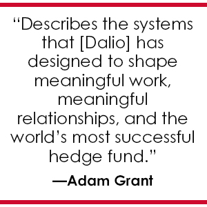 “The billionaire investor has created the strongest culture I’ve ever seen in an organization—one that prizes radical transparency over politics and meritocracy over democracy. In his long-awaited book, he describes the systems that he has designed to shape meaningful work, meaningful relationships, and the world’s most successful hedge fund.” —Adam Grant