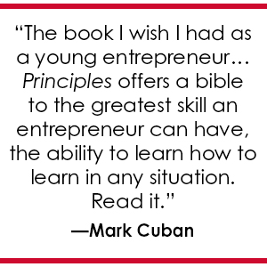 “It’s the book I wish I had as a young entrepreneur, stressing over not knowing what I didn’t know. Principles offers a bible to the greatest skill an entrepreneur can have, the ability to Learn How to Learn in any situation. Read it.” —Mark Cuban